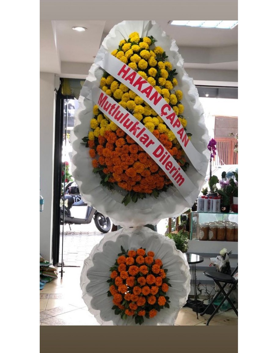 Düğün nikah ve açılış için gönderimi yapılabilen yaklaşık 2 metre yüksekliğinde pembe gerbera ile hazırlanan ayaklı sepet.